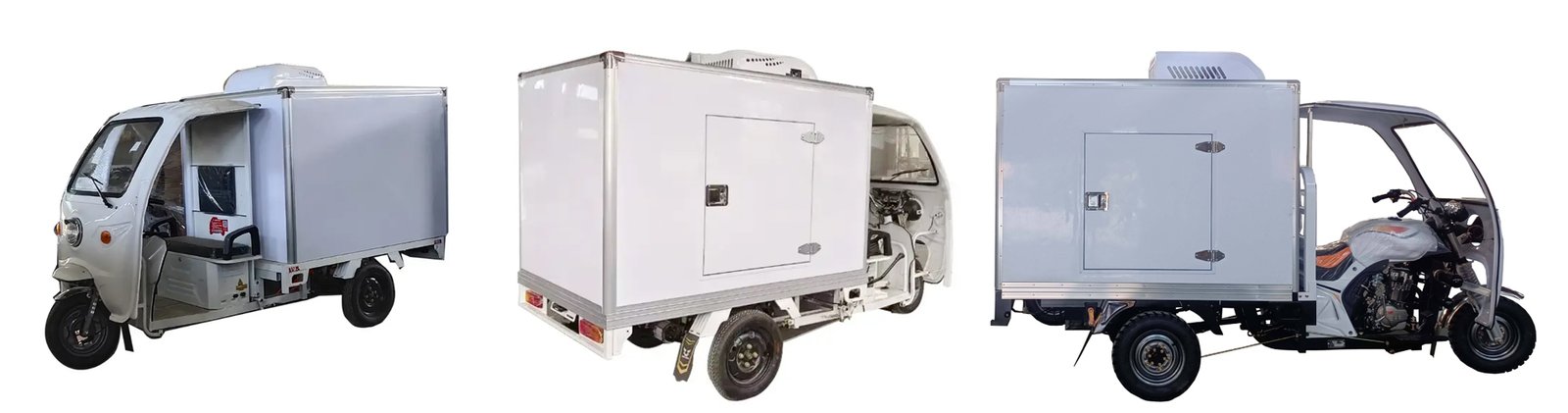 Tri-wheel motor tricycle Refrigerated box with All – Closed FRP / GRP insulated Sandwich Panel Kits and refrigerator units