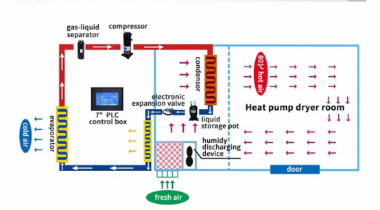 Designed for high-volume operations, our large-capacity dry machines are built to handle substantial workloads without compromising on efficiency. Processing 300KG-5Ton per day.With spacious drying chambers and advanced heating systems, they can process large quantities of materials in a single cycle, significantly reducing production time and labor costs. Ideal for industries such as food processing, pharmaceuticals, textiles, and chemical manufacturing, these machines ensure uniform drying, preserving the quality and integrity of your products. Equipped with intelligent temperature and humidity control, they adapt to different material requirements, providing consistent results batch after batch.Heat Pump Drying Machine takes advantage of the reversed Carnot principle, absorbing the heat from around and sending the heat to the materials which will be dried. This kind of dryer is mainly composed of heat pump dryer and drying chamber. This dryer will be controlled by touch screen controller, and the temperature can be adjusted. It has low electric consumption.we have products heat pump dryer/heat pump drying machine/heat pump dehydrator/fruits dryig machine/fruits dryer/meat drying machine/meat dryer/seafood drying machine/flower/herbs drying machine/spices drying machine/spices dryer/ vegetable drying machine/vegetable dryer/ food drying machine/food dryer